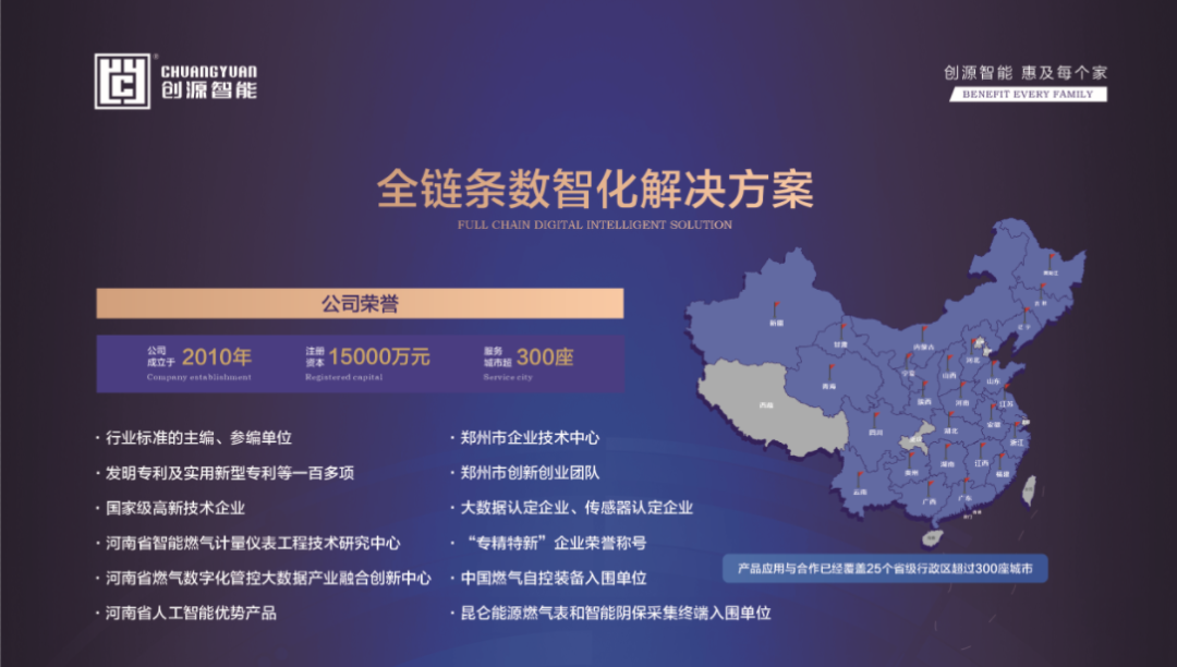 創源智能深耕燃氣行業十多年,底蘊深厚。多年來,我司自主研發的眾多產品在市場上獲得用戶一致好評。公司擁有多項自主知識產權,持續研發優質產品,為客戶提供全鏈條全生命周期解決方案,公司的整體實力穩步提升。