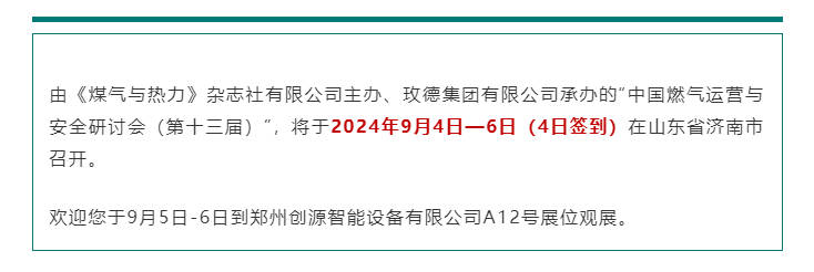 【會議預熱】鄭州創源智能設備有限公司邀請您參加"中國燃氣運營與安全研討會(第十三屆)"