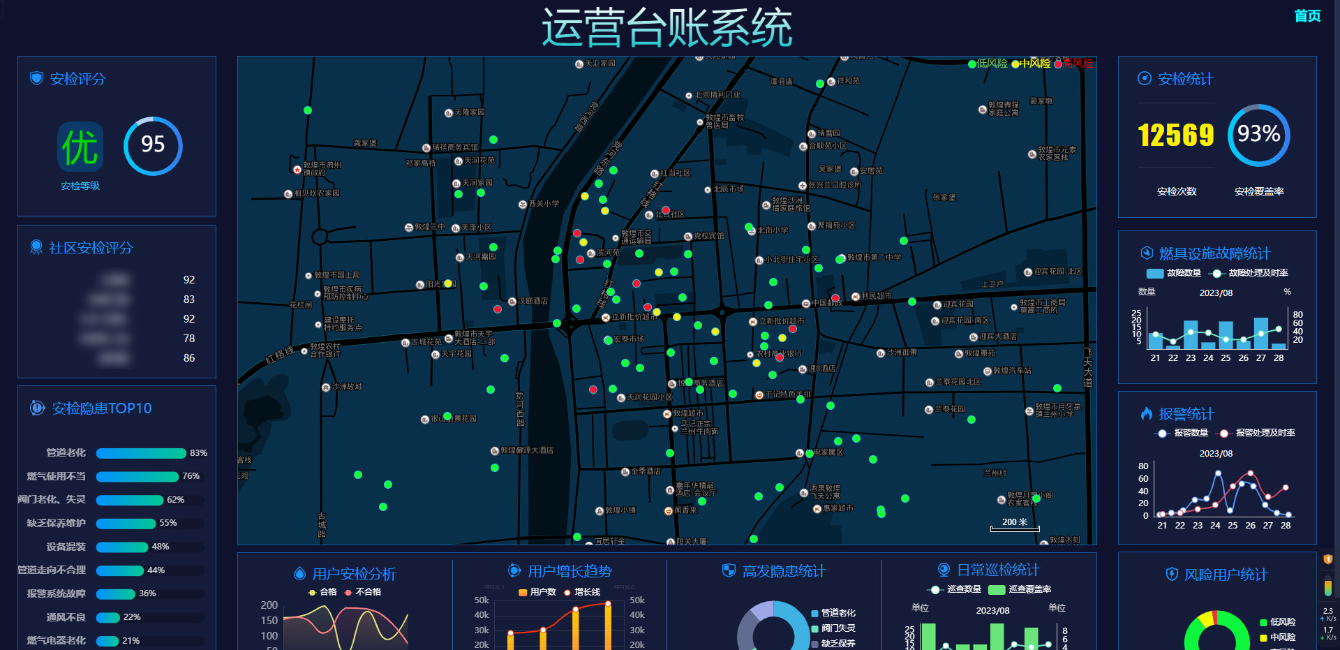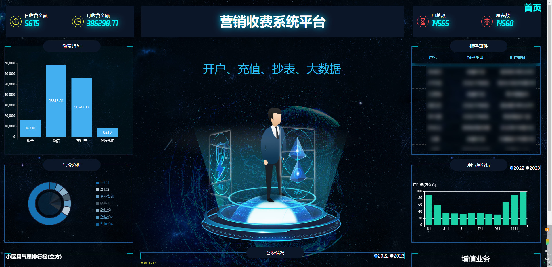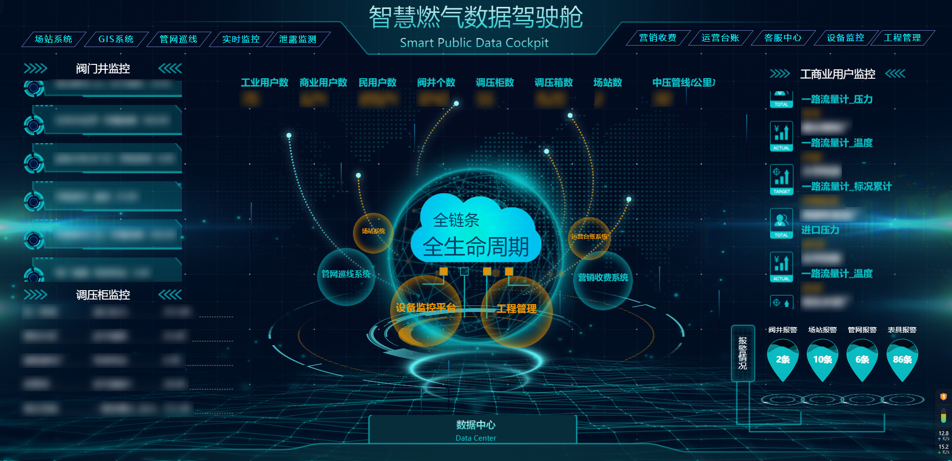 智慧公用數(shù)據(jù)駕駛艙是集源-管-端,為一體的實(shí)時(shí)監(jiān)控平臺(tái),平臺(tái)集成場站系統(tǒng)、GIS系統(tǒng)、管網(wǎng)巡線、實(shí)時(shí)監(jiān)控、泄露監(jiān)測、營銷收費(fèi)、運(yùn)營臺(tái)賬、客服中心、設(shè)備監(jiān)控、工程管理,一整套全流程,全鏈條,全生命周期的平臺(tái)。