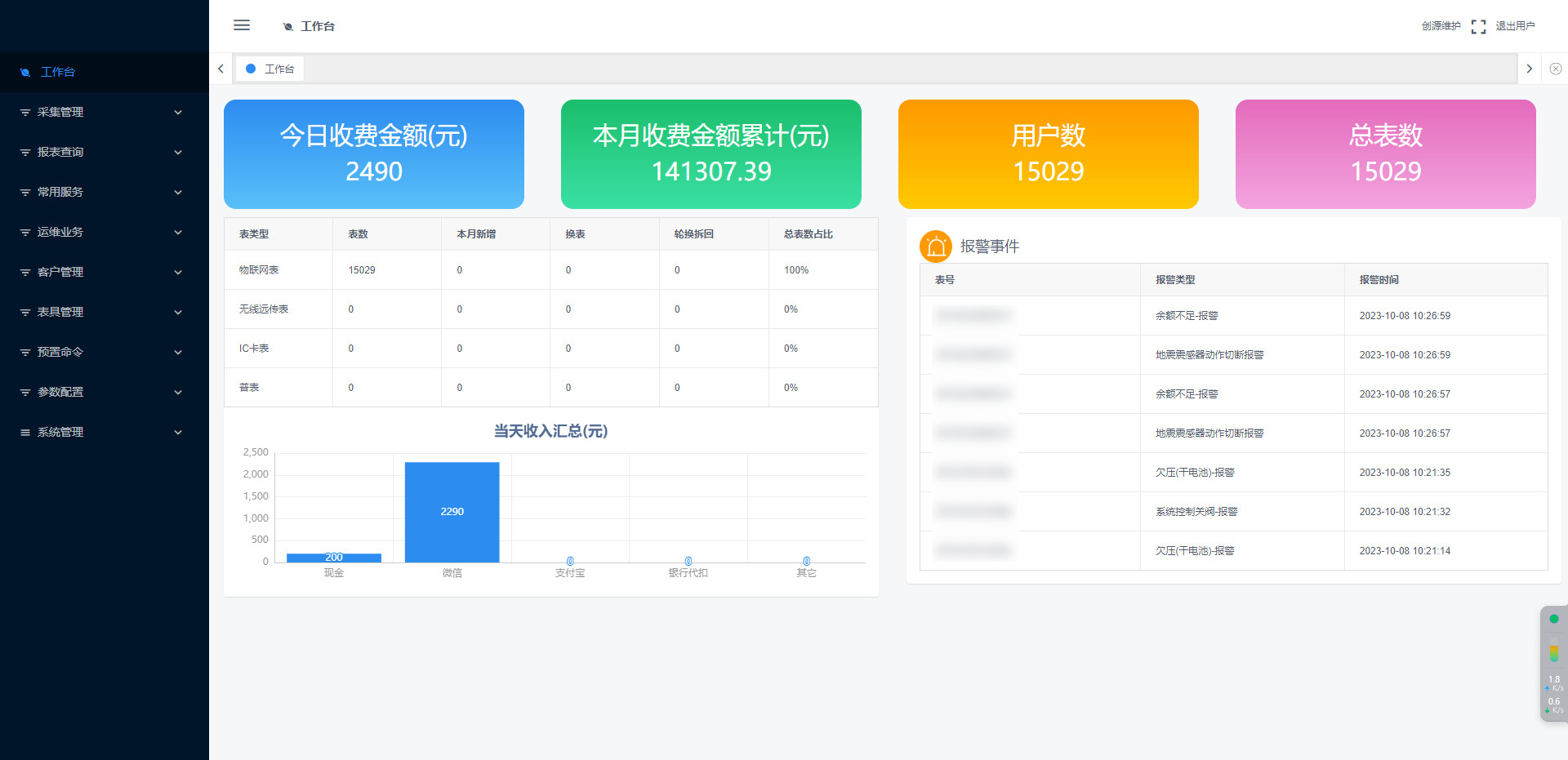 - 4、豐富的報表管理,充值統計,報警統計,抄表統計,用量統計等多種報表。